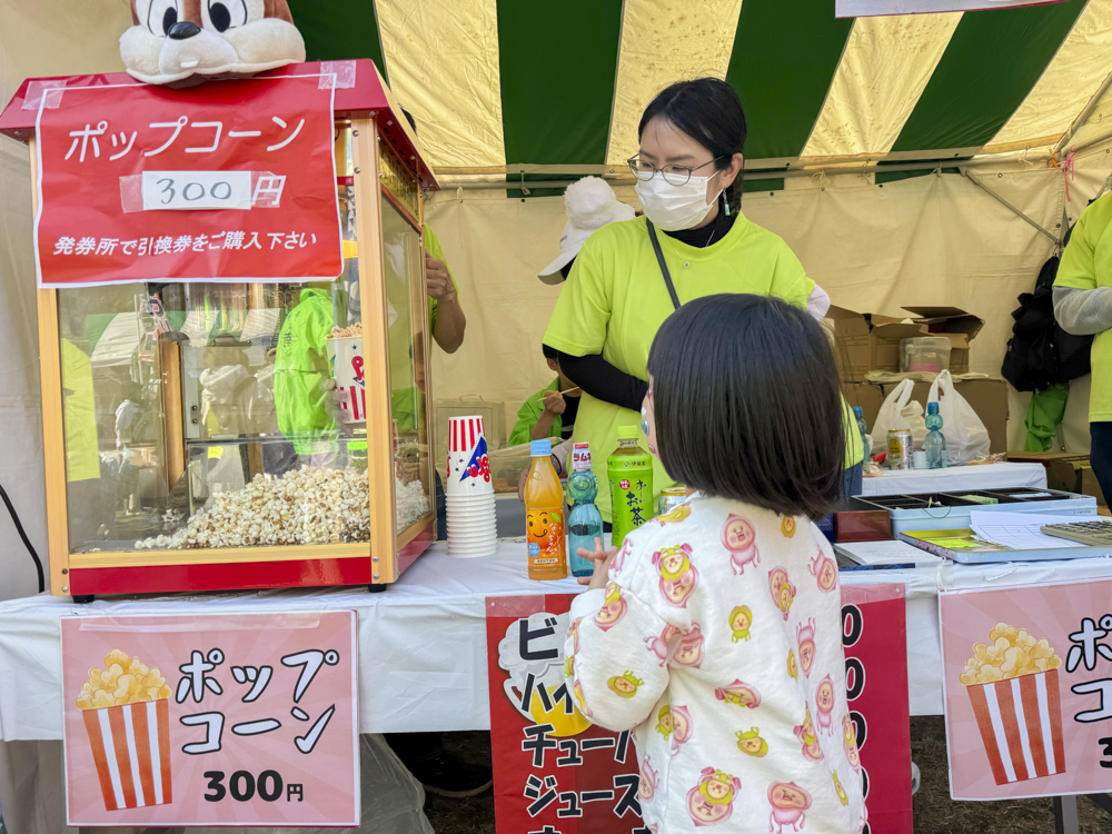 当会では模擬店を出店し、ポップコーンやドリンクの販売を行いました。