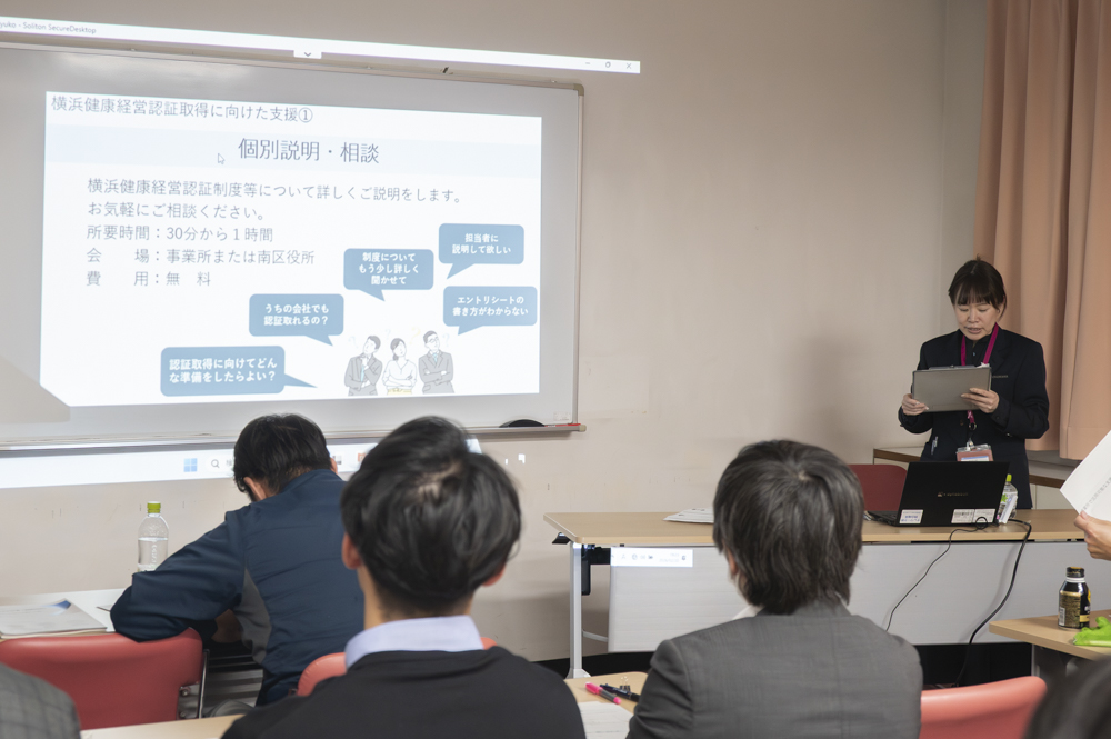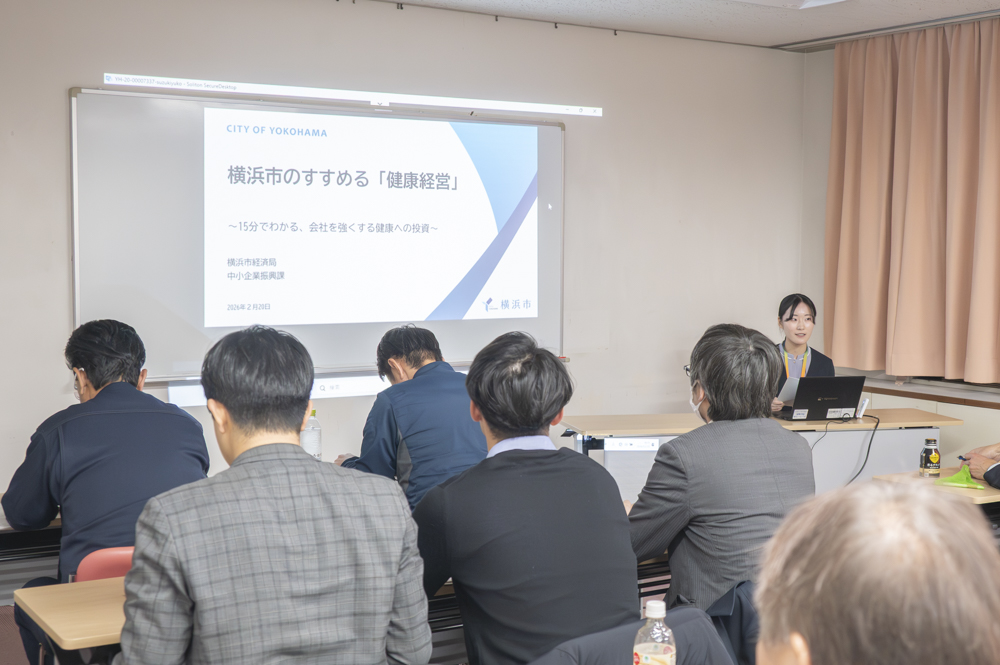 第一部では、横浜市が推進する「健康経営」について、横浜市経済局中小企業振興課よりご説明いただきました。