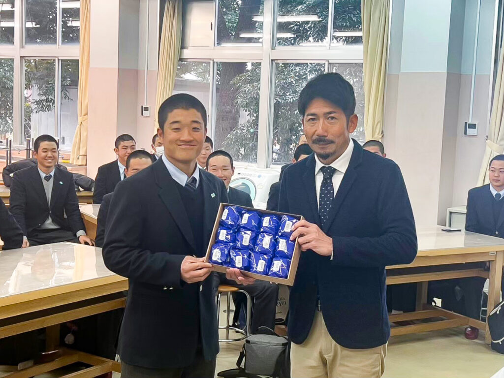 選手の代表からは「ボロボロに破けたボールで練習をしているので、甲子園に向けていただいたボールを使い、練習試合などに挑みたい。ありがとうございます」と、お礼の言葉をいただきました。